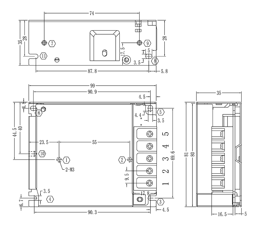 單路開關(guān)電源安裝尺寸及接線