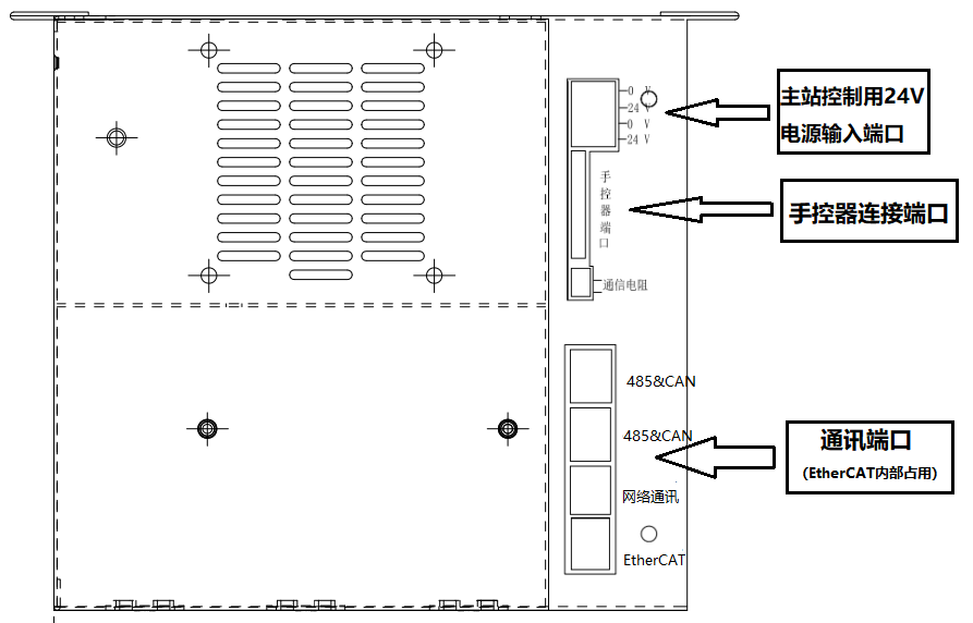 車床機械手控制系統——四軸驅控一體EC-L4箱體整體接線說明: