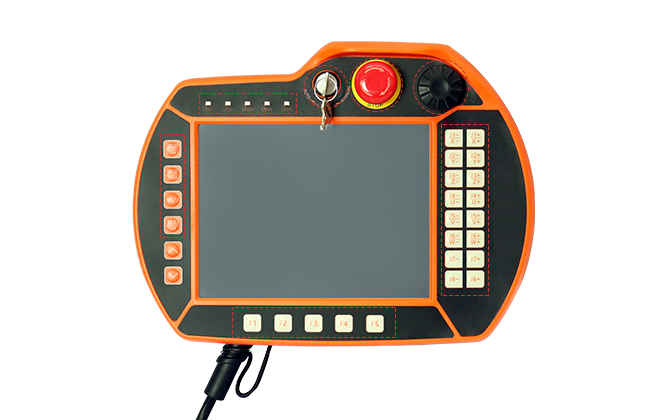 關(guān)節(jié)機器人手控器,為華成自主研發(fā)的六軸關(guān)節(jié)機器人控制系統(tǒng),可滿足擴展7、8軸的應(yīng)用。如下圖,為華成系列關(guān)節(jié)機器人手控器的操作面板按鍵介紹: